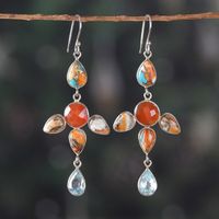 8-Carat Faceted and Cabochon Multi-Gemstone Dangle Earrings 'Fiery Drops' Item ID: 2671781485