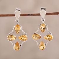 8-Carat Rhodium Plated Citrine Dangle Earrings from India 'Glittering Teardrops' Item ID: 2671792486