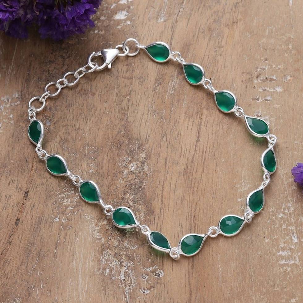 9-Carat Faceted Green Onyx Link Bracelet Crafted in India 'Savant Rain' Item ID: 2671625522