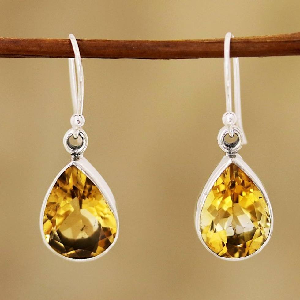9-Carat Teardrop Citrine Dangle Earrings from India 'Yellow Glimmer' Item ID: 2669923794