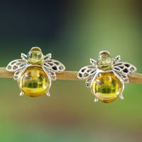 925 Silver Amber Bee Button Earrings with Openwork Accents 'Bubbly Bee' Item ID: 2669927170