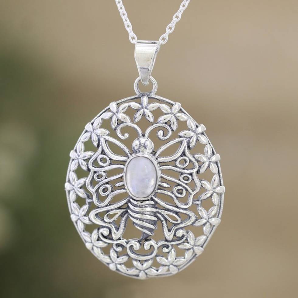 925 Silver Butterfly Pendant Necklace with Rainbow Moonstone 'Chic Butterfly' Item ID: 2671786509