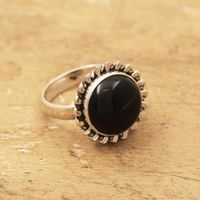 925 Silver Cocktail Ring with Black Onyx Stone from India 'Midnight Bloom' Item ID: 2671786993