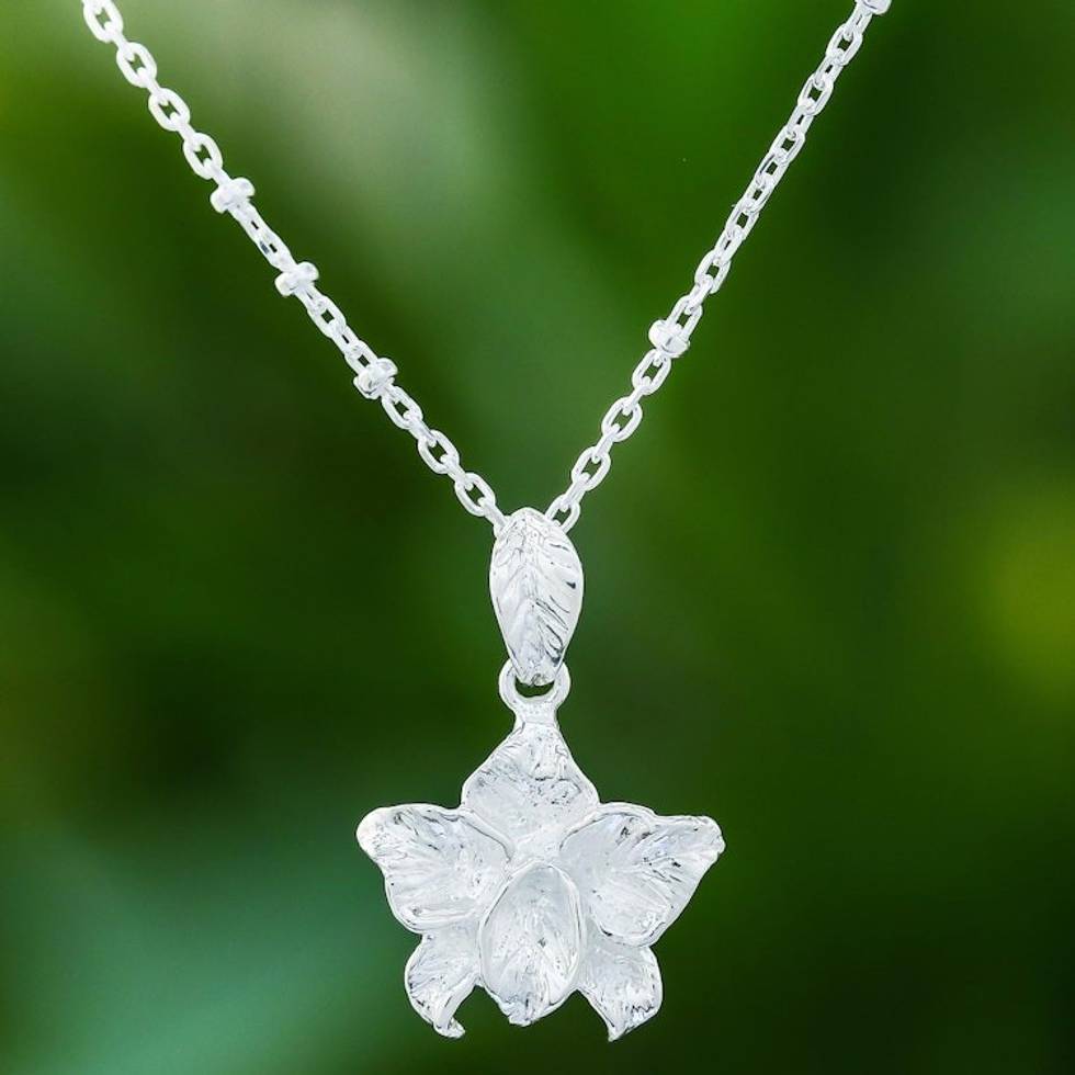 925 Silver Floral Pendant Necklace Handcrafted in Thailand 'Orchid Blossom' Item ID: 2671798505