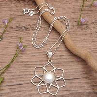 925 Silver Floral Pendant Necklace with Peach Cultured Pearl 'Floral Glare' Item ID: 2671671156