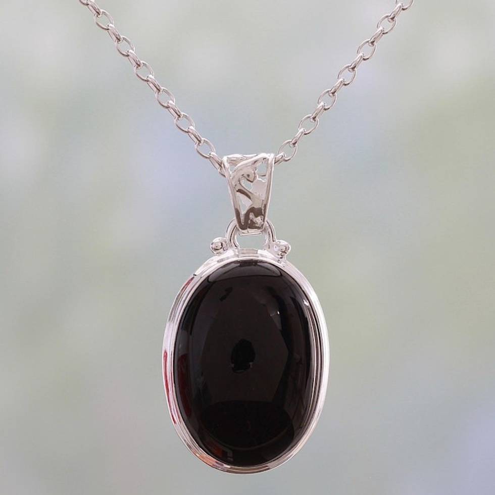 925 Silver India Jewelry Chain Necklace with Onyx Pendant 'Elegant Protector' Item ID: 2671791035