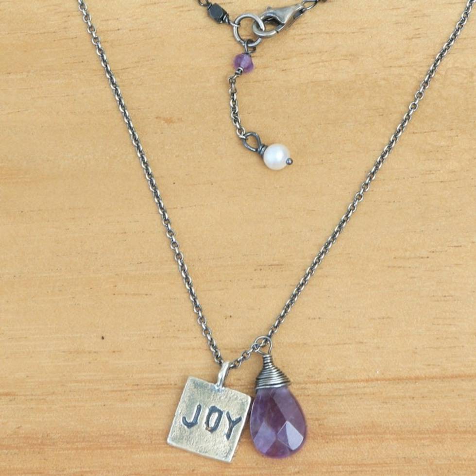 925 Silver Joy Inspirational Amethyst and Pearl Necklace 'Inspiring Joy' Item ID: 2671478694