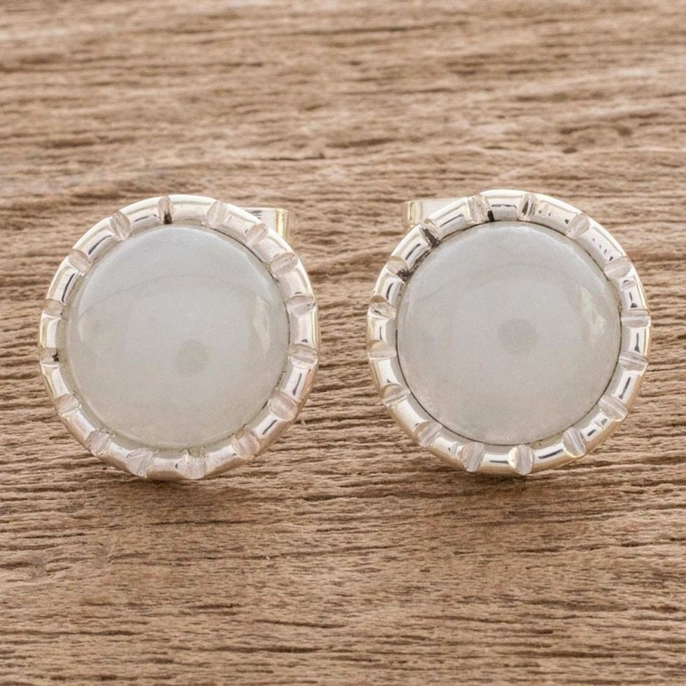 925 Silver Stud Earrings with Pale Ice Green Jade Circles 'Ice Green Moon' Item ID: 2671776748