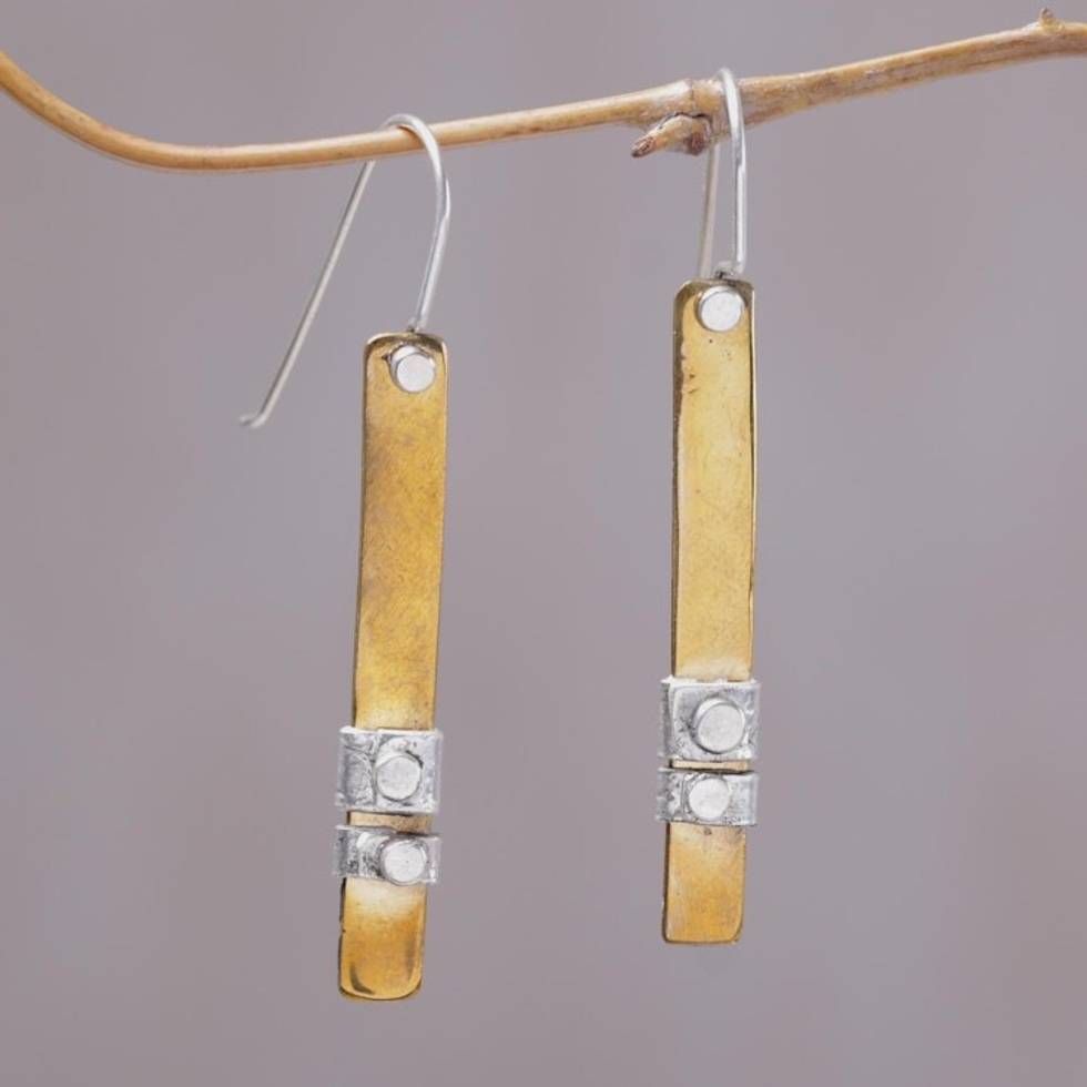 925 Sterling Silver Accent Brass Dangle Earrings from Bali 'Island Journey' Item ID: 2669922354