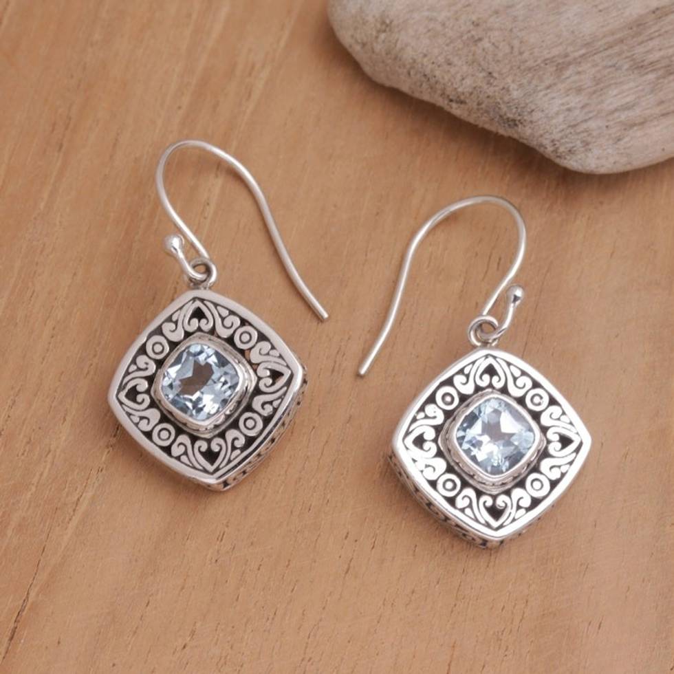 925 Sterling Silver and Blue Topaz Dangle Earrings from Bali 'Stuck on You in Blue' Item ID: 2671747737