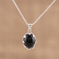 925 Sterling Silver Black Onyx Pendant Necklace from India 'Midnight Majesty' Item ID: 2671791599