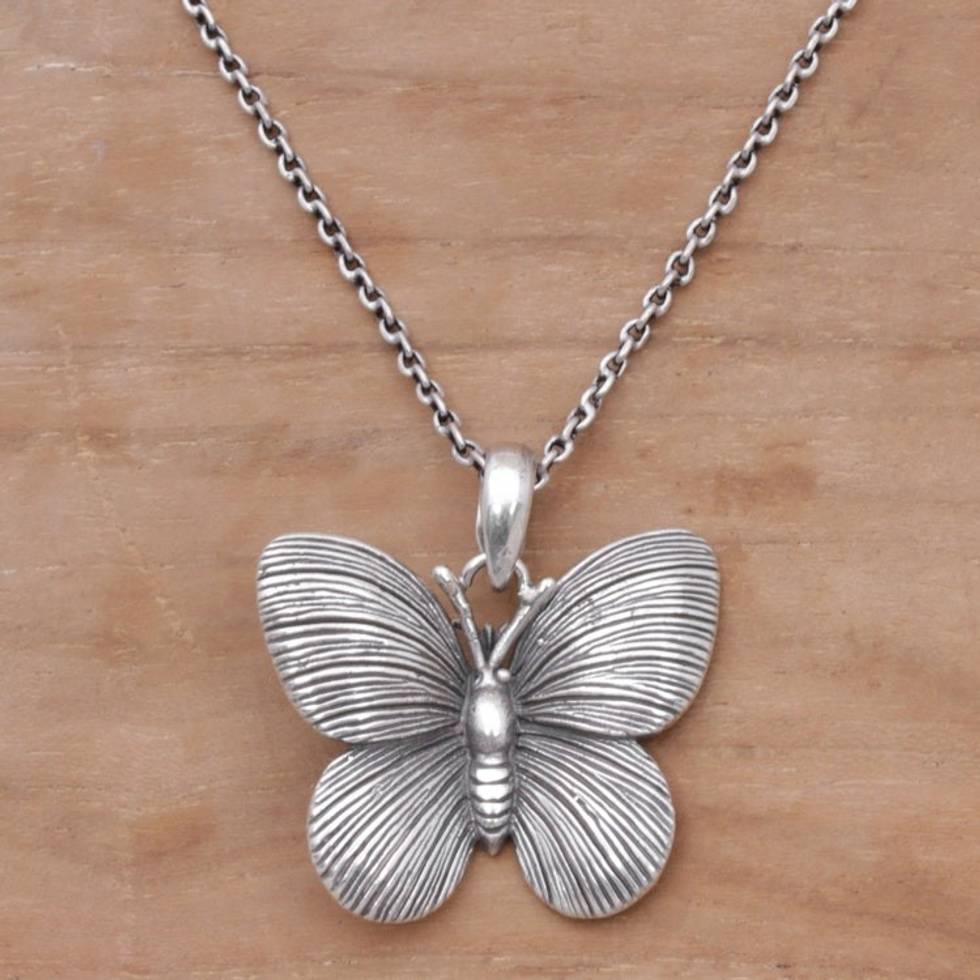 925 Sterling Silver Butterfly Pendant Necklace from Bali 'Blessed Butterfly' Item ID: 2671734593