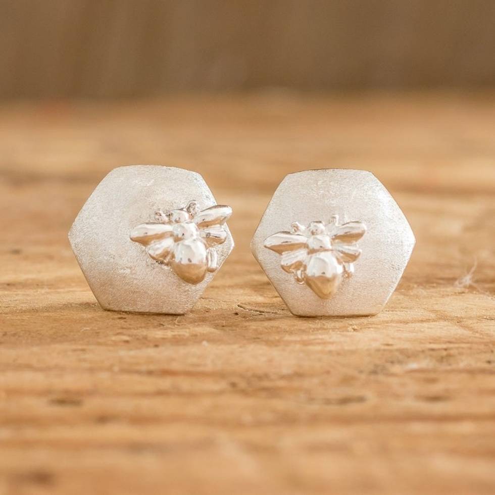 925 Sterling Silver Button Earrings from Costa Rica 'Sweet Little Bee' Item ID: 2671772237