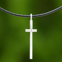 925 Sterling Silver Cross on Black Braided Cord Necklace 'Exquisite Cross' Item ID: 2671640889