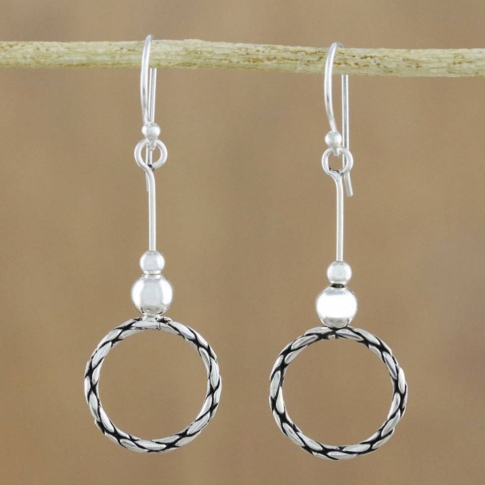 925 Sterling Silver Dangle Circle Earrings of Thailand 'Mesmerizing Circles' Item ID: 2671801428