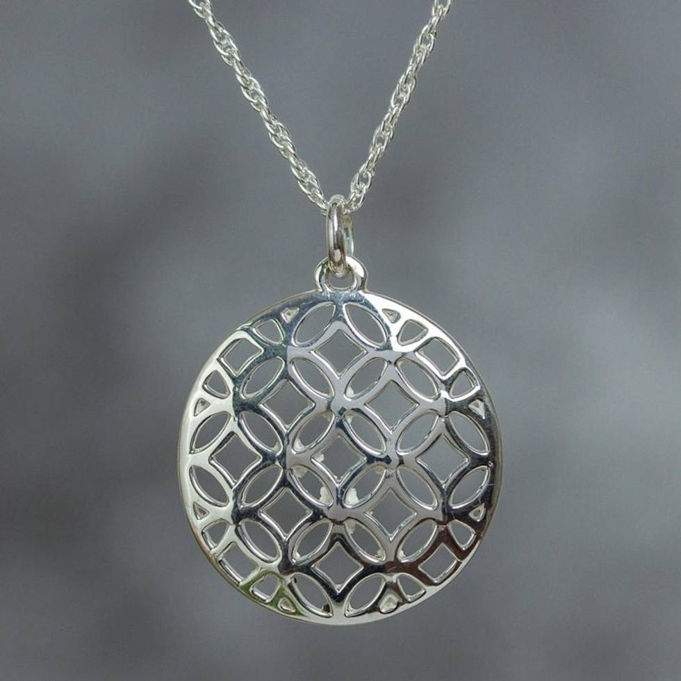 925 Sterling Silver Flower Pendant Necklace From Taxco 'Geometric Flower' Item ID: 2671808029