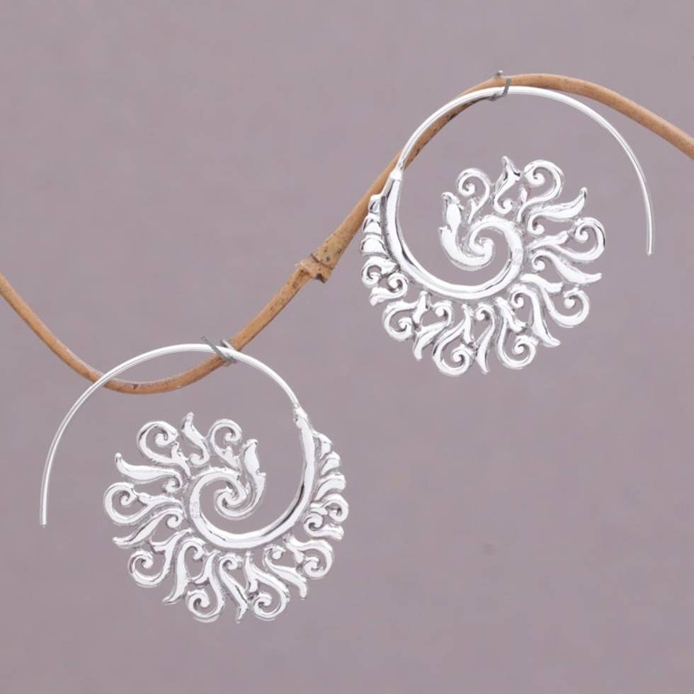 925 Sterling Silver Half Hoop Earrings from Indonesia 'Spiral Beauty' Item ID: 2669921451