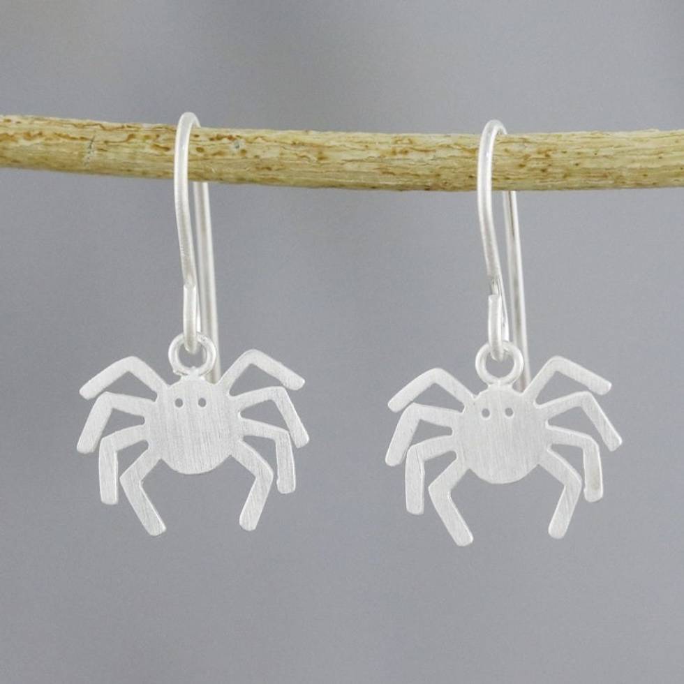 925 Sterling Silver Handmade Dangle Spider Earrings 'Eight Legged Love' Item ID: 2669926357