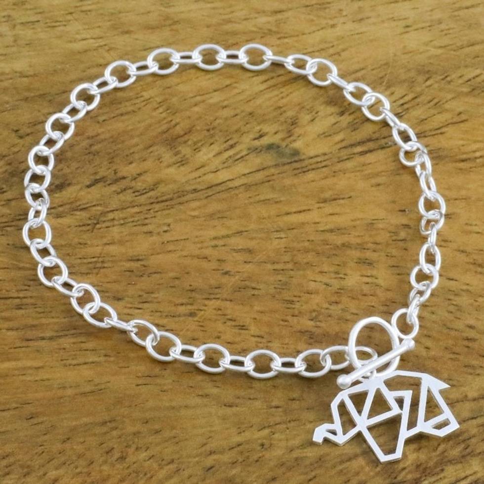 925 Sterling Silver Handmade Origami Elephant Link Bracelet 'Transcendental Elephant' Item ID: 2671801338