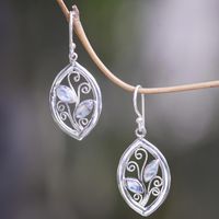 925 Sterling Silver Leaf Earrings with Rainbow Moonstone 'Paradise Leaves' Item ID: 2671476171