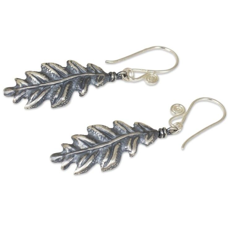 925 Sterling Silver Oak Leaf Artisan Crafted Earrings 'Midnight Oak Leaf' Item ID: 2671802233