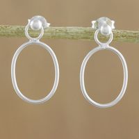 925 Sterling Silver Oval Frame Dangle Earrings with Posts 'Elegant Oval' Item ID: 2671800925