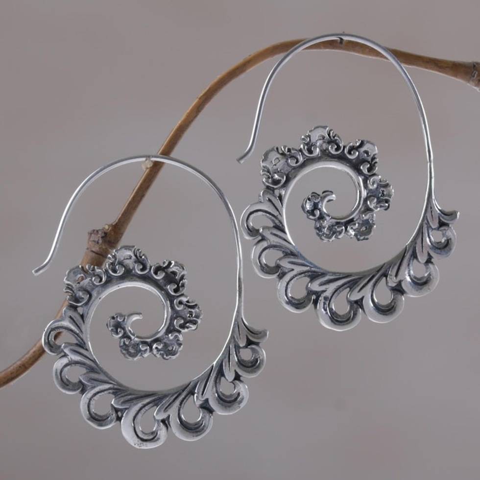 925 Sterling Silver Paisley Half-Hoop Earrings from Bali 'Paisley Ferns' Item ID: 2669921318