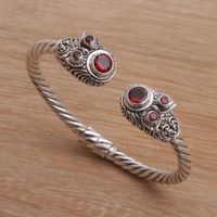 925 Sterling Silver Rope Cuff Bracelet with Garnet Stones 'Crimson Daydream' Item ID: 2671736543
