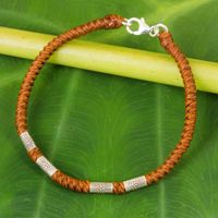 950 Silver Accent Wristband Braided Bracelet from Thailand 'Simply Happy in Rust' Item ID: 2671802535