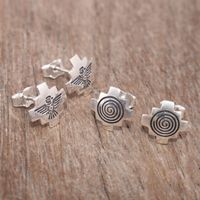 950 Silver Andean Stud Earrings 2 Pairs 'Andean Cosmovision' Item ID: 2670697629