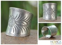 If you are trying to find that bold ring that chants beauty, beauty beauty....look no further Achara is so talented and has created yet another enchanting piece in "The Silver Sun." I also purchased the "Hill Tribe Sun." I wanted a silver cuff style ring, that I could wear on my middle finger and that made my hand pop with a sassy kind of elegance.....and so I had to buy two of Achara's cuff rings each unique in their own way. With the silver sun ring the design focuses on the front and the Hill Tribe Sun not only has design on front but on the back where the cuffs meet....what a fantastic idea n creation. I luv how the ring doesn't slide around, it literally hugs my finger securely and with comfort. Money well spent, truly a gorgeous style Achara thx U!!!!!