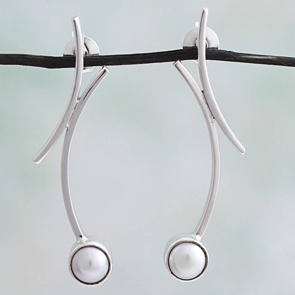 950 Silver Cultured Pearl Drop Earrings from Mexico 'Curvy Beauty' Item ID: 2669926846