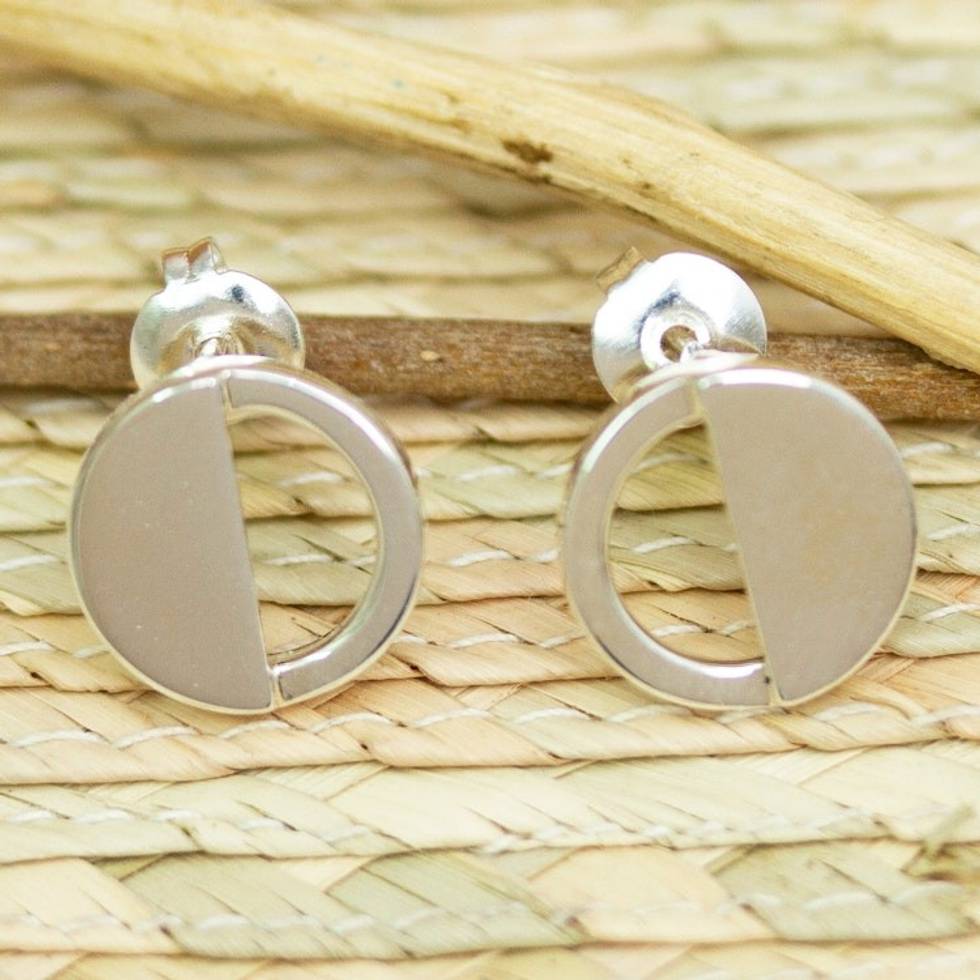 950 Silver Eclipse-Inspired Button Earrings from Mexico 'Penumbra' Item ID: 2671808059