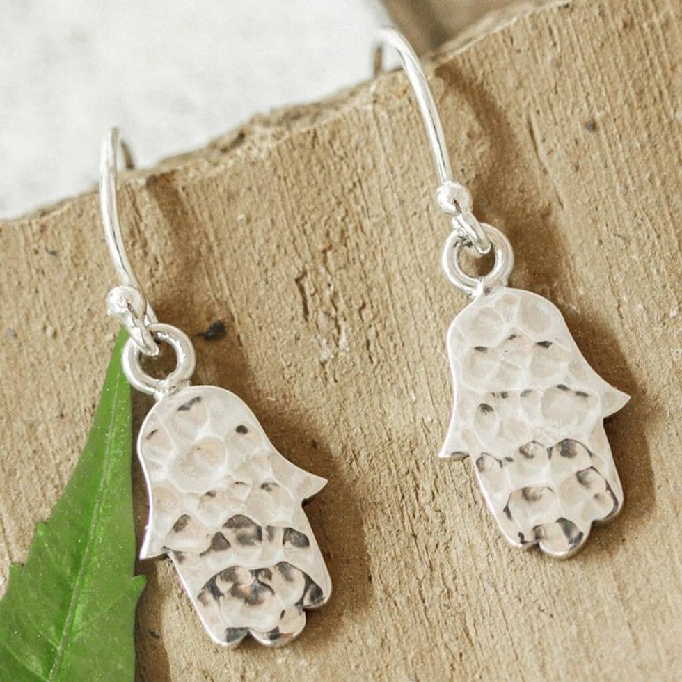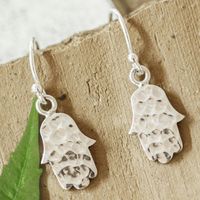 950 Silver Hamsa Hand Dangle Earrings from Mexico 'Magic Hands' Item ID: 2671808438