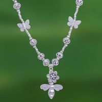 'Basket of Posies', necklace is unique and pretty. Too long for me, one knot solved problem. Eye Catching. Wear with 'Urban Love' earrings and 'Weaving Fantasies' ring, both by designer, Achara. Can also wear with large, 'Chiang Mai Rose' earrings by Achara. Price higher than other necklaces by Pakaon Sojintarit...may be because silver is 950. Solid, well made. Happy with purchase.