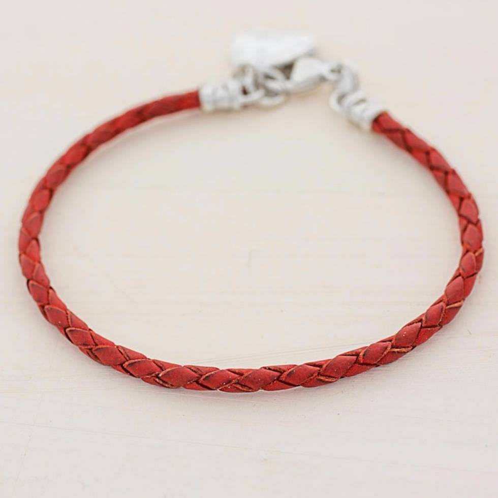 999 Silver Red Leather Charm Wristband Bracelet Guatemala 'Walk of Life in Red' Item ID: 2669933230