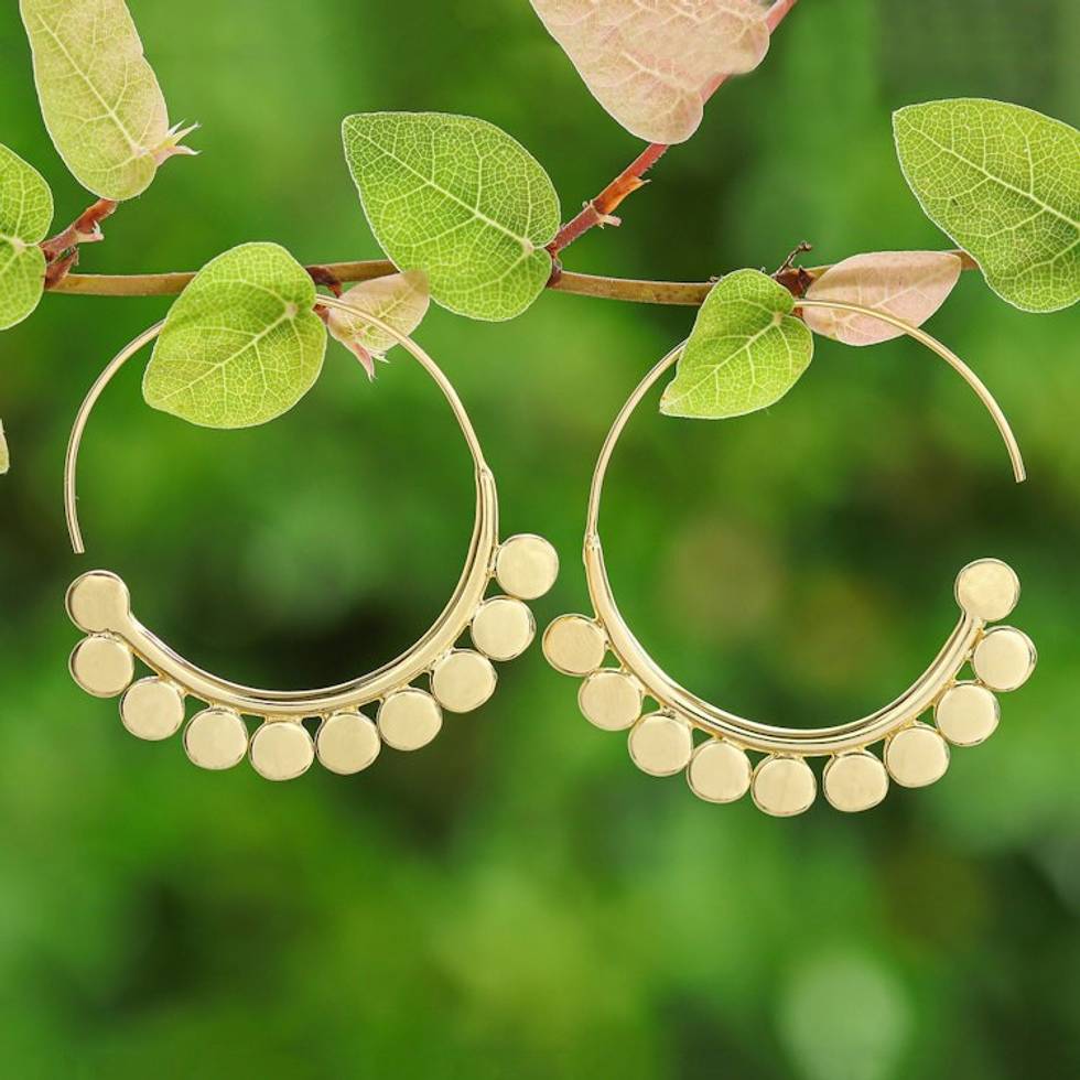Abstract 18k Gold-Plated Half-Hoop Earrings from Thailand 'Modern Triumph' Item ID: 2671796910