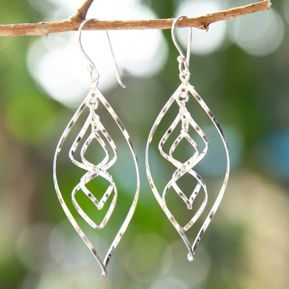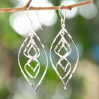 Abstract High-Polished Sterling Silver Dangle Earrings 'Infinity Petal' Item ID: 2671764898