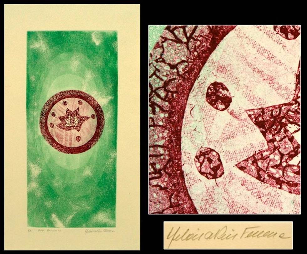 "I began to teach art in Sao Paolo in 1967 and in 1970 I started working with xilogravure and metal engraving. I studied with renowned artists Edith Behring, Anna Letycia and Mario D'Oglio. In 1979-1980 I won a scholarship to go to Portugal to study at the Fundação Calouste Gulbenkian.