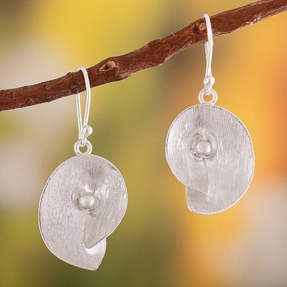 Abstract Leaf-Themed Sterling Silver Dangle Earrings 'Modern Essence' Item ID: 2671698071