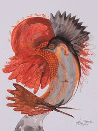 Abstract Modern Orange Brown Acrylic on Paper Bird Painting 'Crimson Crest' Item ID: 2676665465