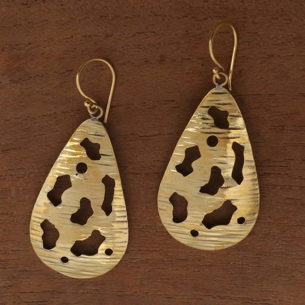 Abstract Motif Brass Dangle Earrings from Bali 'Abstract Drops' Item ID: 2671737644