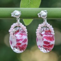 Abstract-Patterned Red Blown Glass Beaded Dangle Earrings 'Romantic Red Soul' Item ID: 2671796658