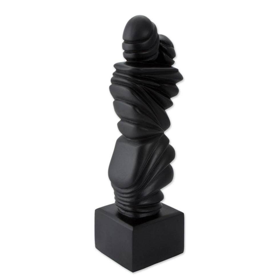 Abstract Signed Black Resin Love Theme Sculpture 'Kiss' Item ID: 2669891009