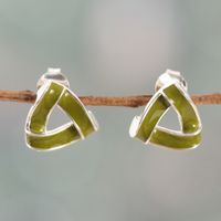 Abstract-Themed Green Sterling Silver Button Earrings 'Olive Enigma' Item ID: 2671622746