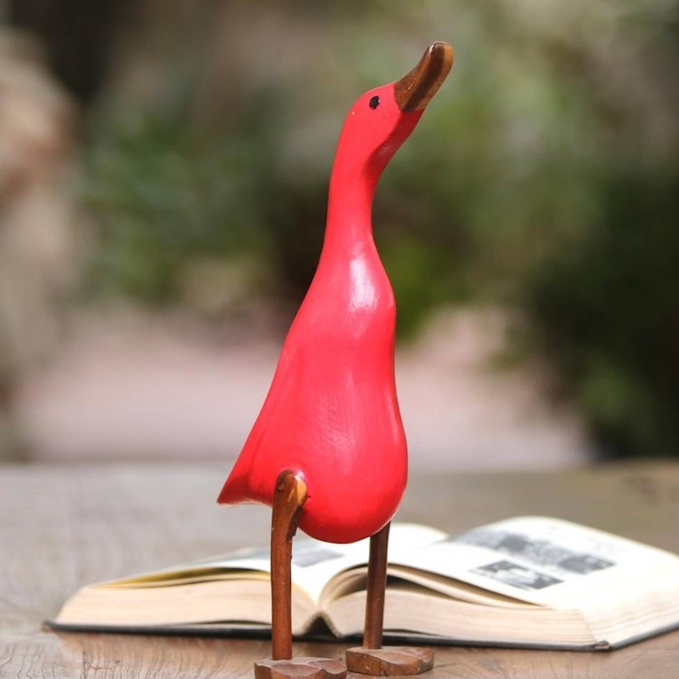 Acacia Wood and Bamboo Root Duck Sculpture in Red from Bali 'Barefoot Duck' Item ID: 2671736438
