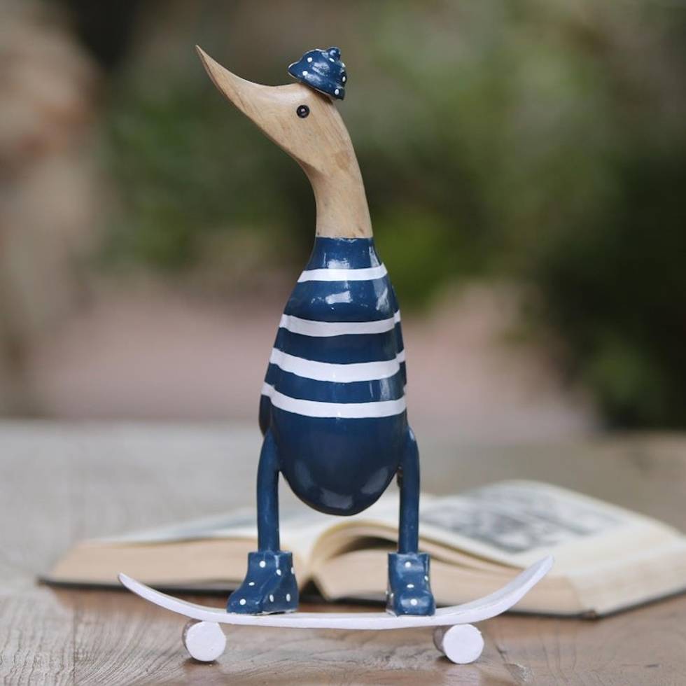 Acacia Wood and Bamboo Root Skateboarder Duck Sculpture 'Skateboard Duck' Item ID: 2669891606