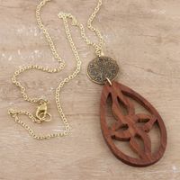 Acacia Wood and Brass Pendant Necklace from India 'Majestic Drop' Item ID: 2669923774