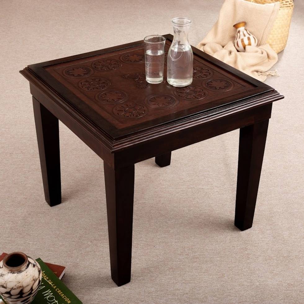 Accent Table Handmade from Wood and Embossed Leather 'Rest in The Amazon' Item ID: 2671698115