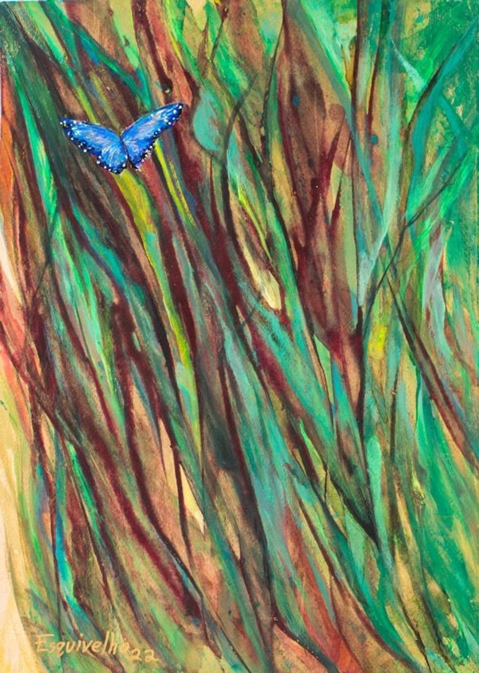 Acrylic and Dyes on Paper Expressionist Butterfly Painting 'Grassland with Butterfly' Item ID: 2669898995